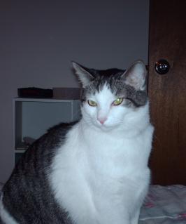 Hemingway is a 9 year old domestic short hair. I adopted him from the Topeka Cat Association when he was approximately six months old and named him after my favorite author. No, he is not polydactyl - I just love the name. He is a very mellow, sweet-natured cat who thinks he is everyone's mommy. His hobbies include napping, gerbil watching, and mothering everyone in the house. His favorite toy is the gerbil tank.
