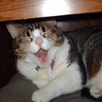 Huxley is a 7 year old domestic short hair. She was given to me by a student whose cat had an unexpected litter. She was the last one to be chosen and I guess I was her desperate last chance. I thought she was adorable! She has the sweetest little face. Unfortunately, her temperment is not as sweet. She is definitely a diva. Her nickname is Princess and she so acts like one, but her given name is Huxley after the author. Yes, there is a pattern going. Her favorite toy is anything pink, fuzzy, or furry. She adores furry mice or anything anybody else is playing with at any given time. She especially enjoys tormenting her sister Hathor, napping, and watching birds out the window.